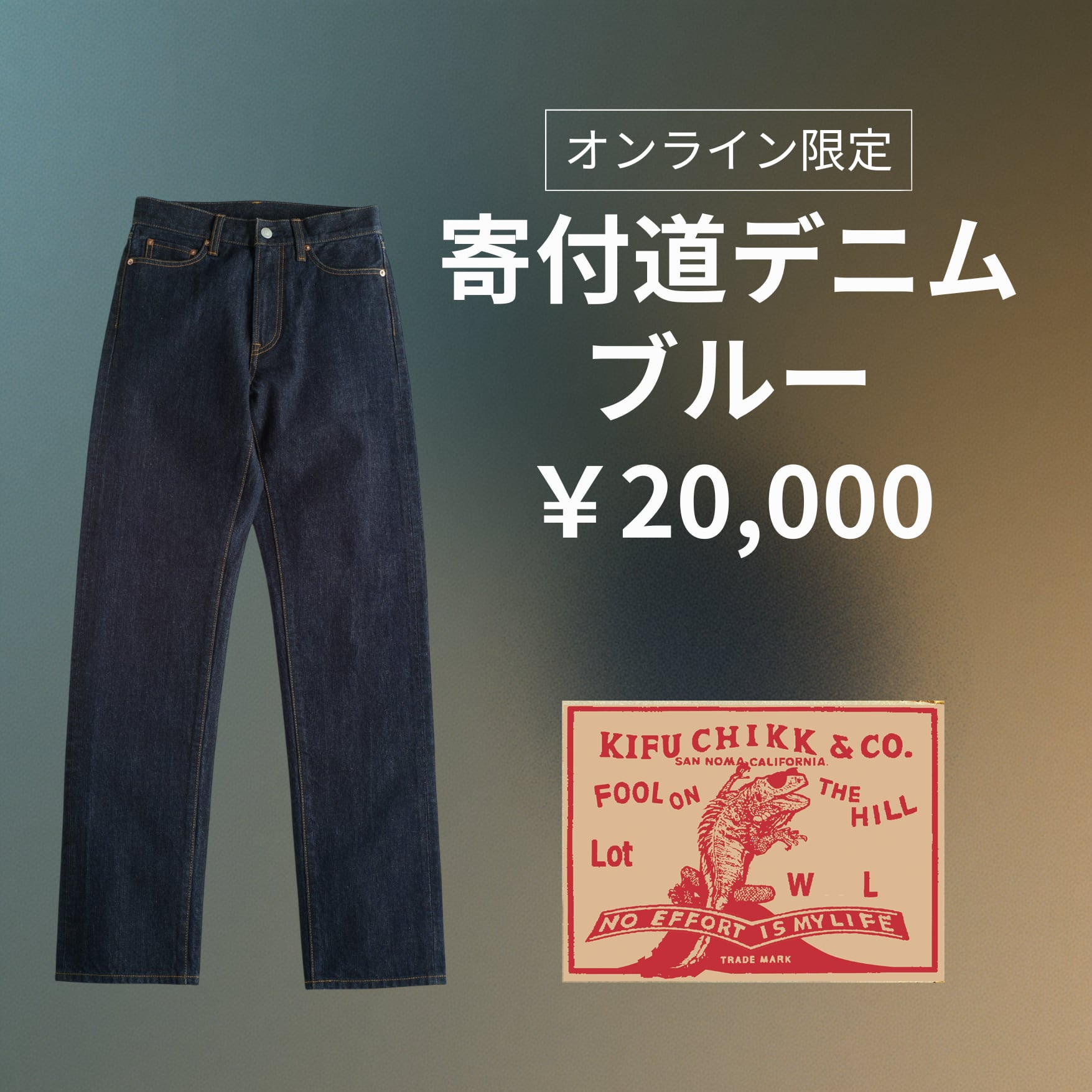 寄付道シャツのようなドレスシャツにも、カジュアルなトップスにも合う、寄付道オリジナルのデニムです。